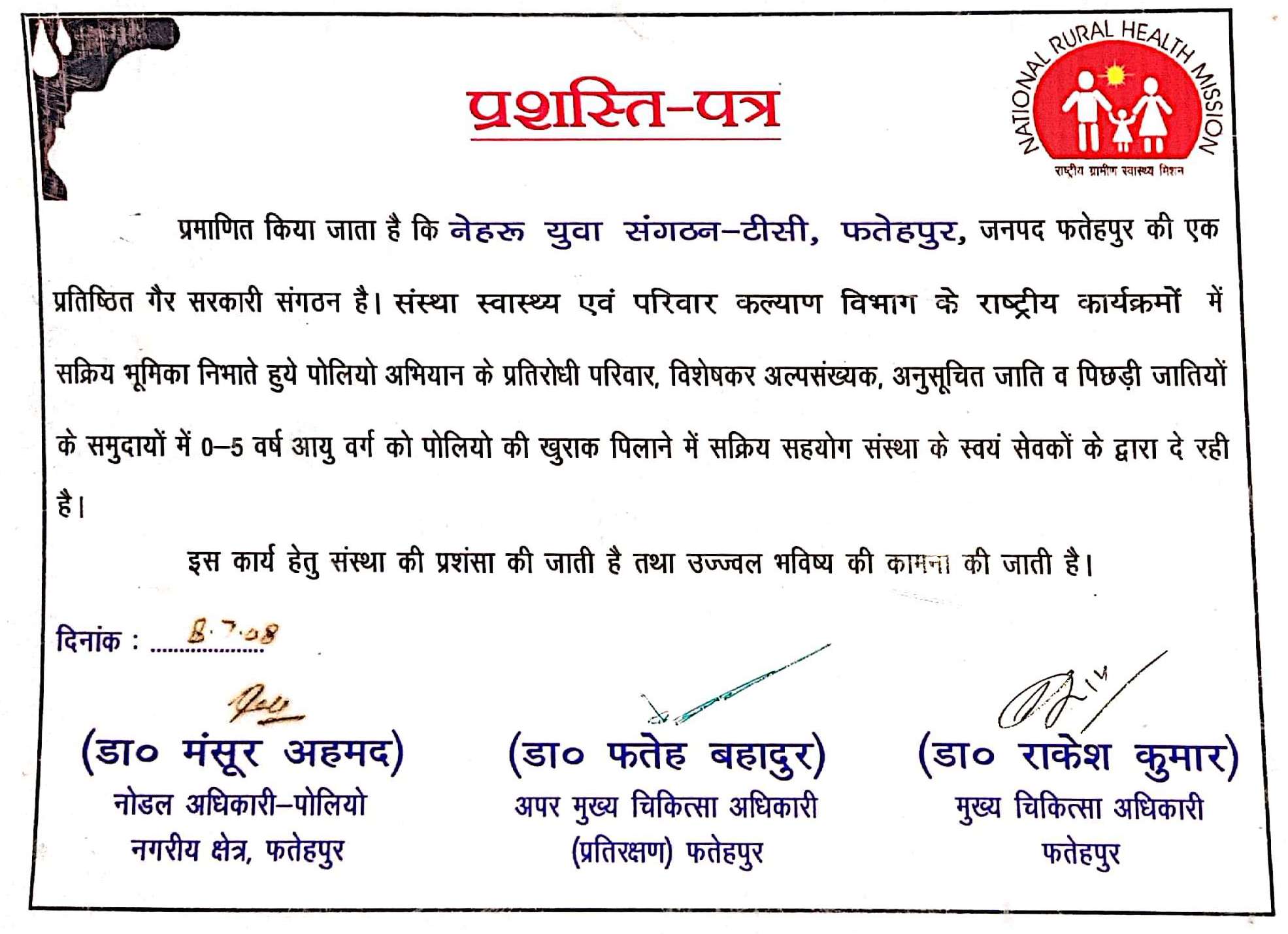 Nehru Yuwa Sangathan-Tisi was founded in village Tisi, Haswa Block of Fatehpur district in UP for the purpose of organizing the rural unemployed youth leading by the founder Rajendra Prasad Sahu. The main aim of the organization is to engage rural & urban youth in various constructive and creative ways by first making them self dependent to be further able to make concerted efforts to bring about the desired social change in which women, children and the deprived sections of our society are aware of their rights as also know the ways and means of protecting and realizing their right for all-round development.
